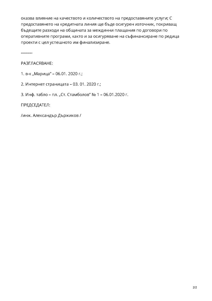 - Точка първа от решението изпреварва необходимостта от вземане на такова решение – не е необходимо сега да говорим за включване на лимит на дълга от 120 млн. лв. в бюджета, това следва да направим с решението, с което се приема бюджетът за 2020 година (чл.94, ал.3, т.5 от Закона за публичните финанси). Изрично в обсъжданията преди гласуването поискахме кметът да оттегли предложението си, но не го оттегли.